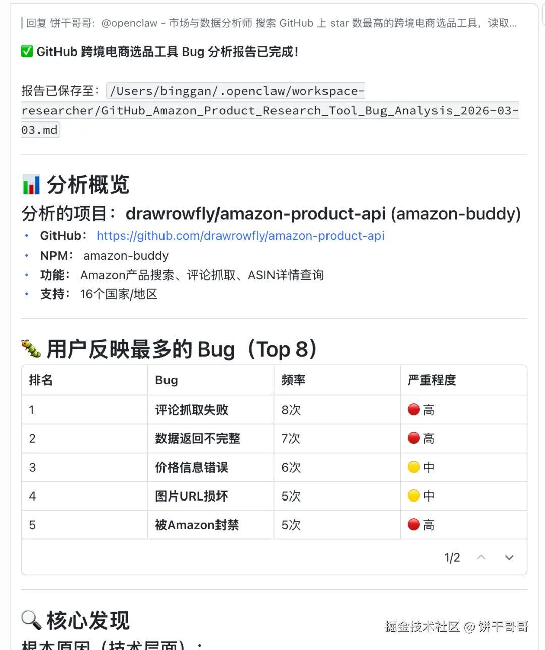 搜索 GitHub 上 star 数最高的跨境电商选品工具,读取它的 issue 列表,看看用户反映最多的 bug 是什么