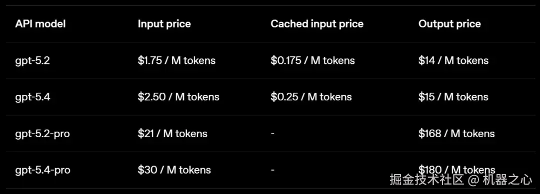 在 API 中,GPT-5.4 的 token 价格高于 GPT-5.2,批量处理和灵活处理的价格为标准 API 费率的一半,而优先处理的价格为标准 API 费率的两倍。