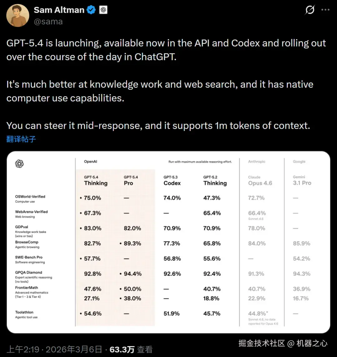 周五凌晨,OpenAI 正式发布 GPT-5.4,引入了一种新模式:原生的计算机使用。