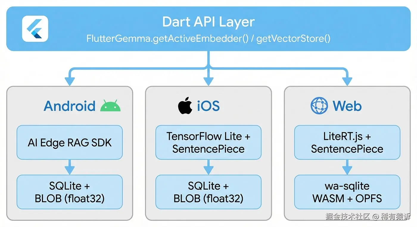 在 Android 平台上,Google 提供了一个官方的 AI Edge LocalAgents RAG SDK,因此集成非常简单。iOS 和 Web 平台的情况则不同------没有官方 SDK,所以我从头开始构建了整个流程:iOS 使用 TensorFlow Lite 解释器,Web 使用 LiteRT.js,两者都使用 SentencePiece 分词器,手动处理张量,并进行精细的内存管理。桌面版支持即将推出(希望如此)