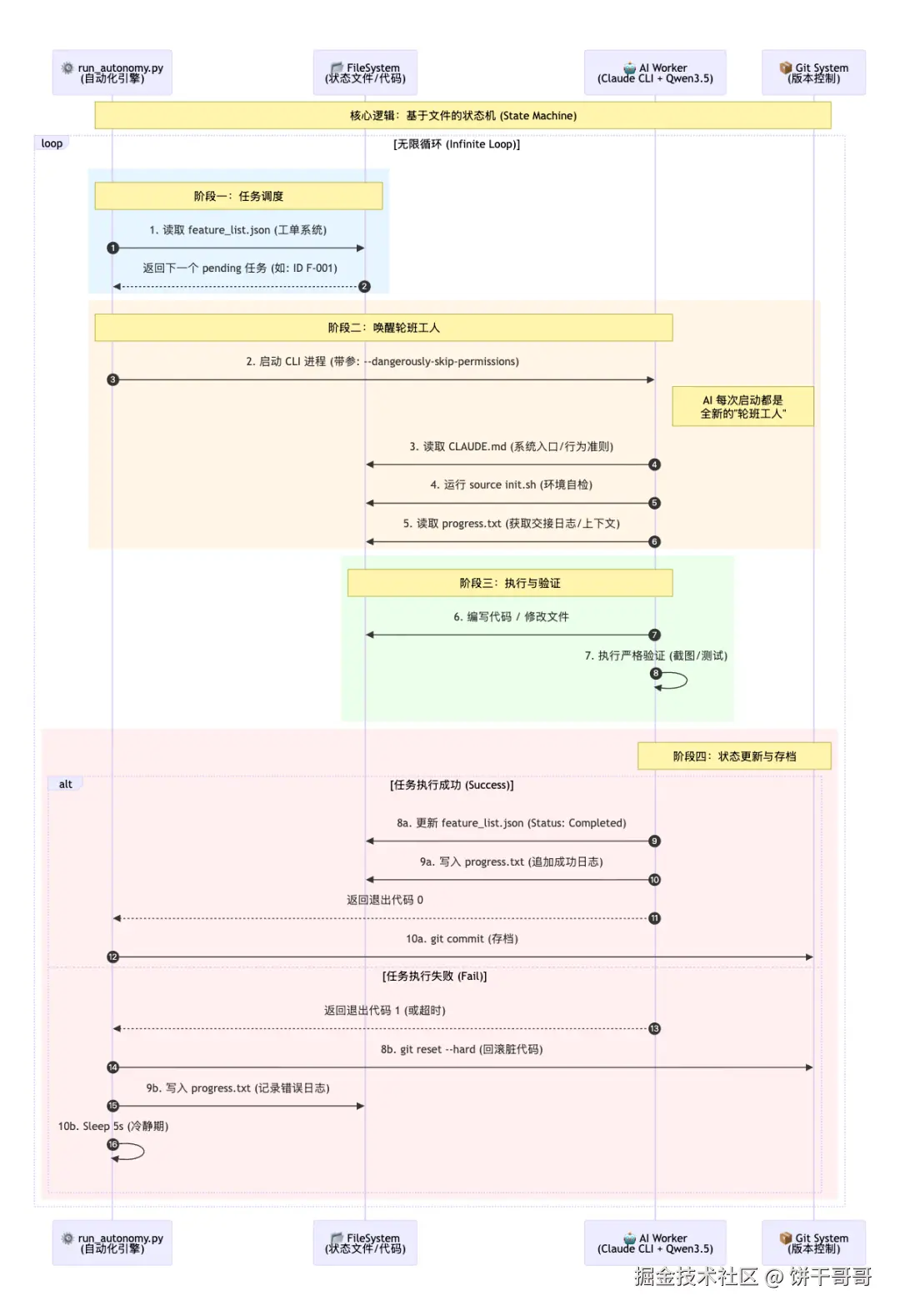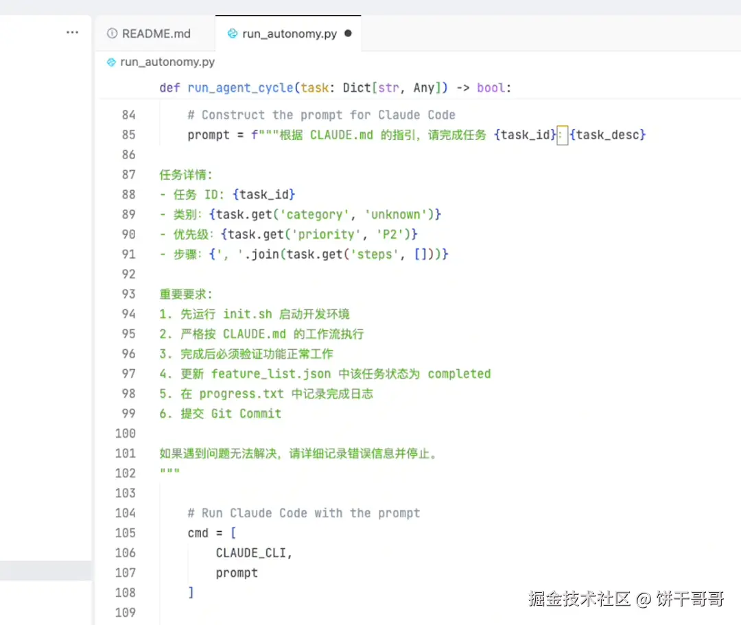有了这些文件还不够,我们需要一个脚本来驱动 AI 不断循环工作。我写了一个 run_autonomy.py