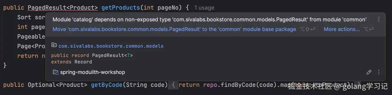 - ❌ 模块'catalog'依赖了模块'common'中的非暴露类型......PagedResult!