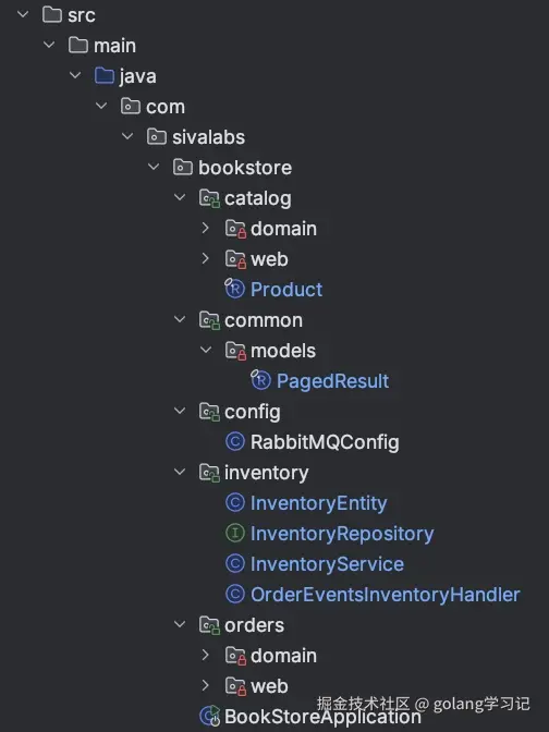 catalog、orders、inventory、common,包含domain、web等子包) - 把类从