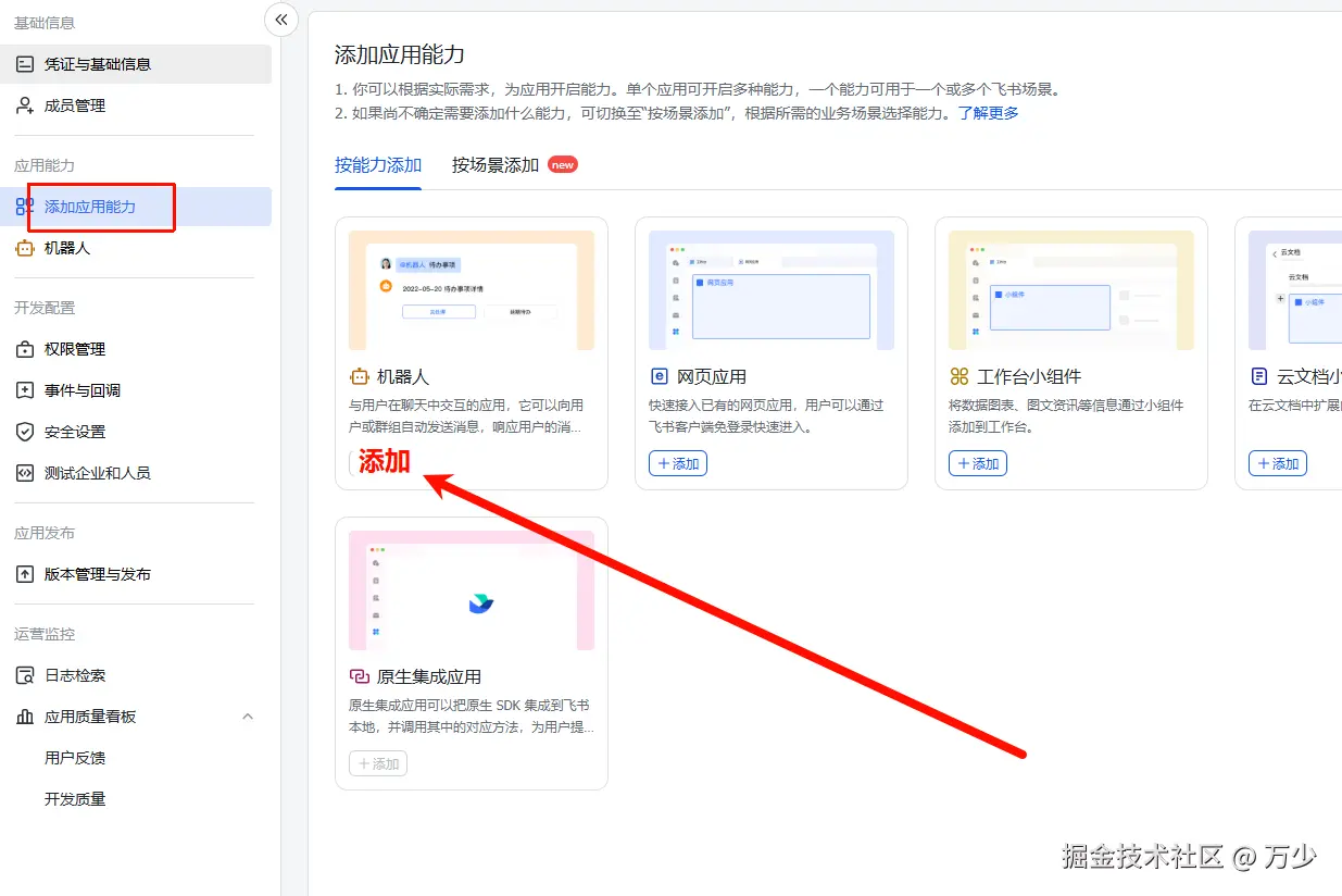 进入刚才添加的应用,添加机器人