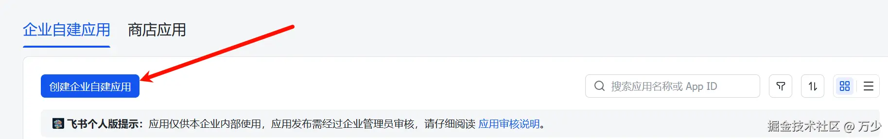 1. 登录飞书,添加企业应用(不需要真有企业)