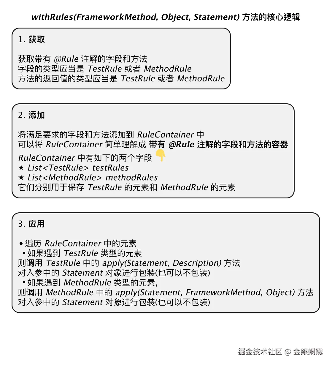 画 "withRules(FrameworkMethod, Object, Statement) 方法的核心逻辑" 一图所用到的代码