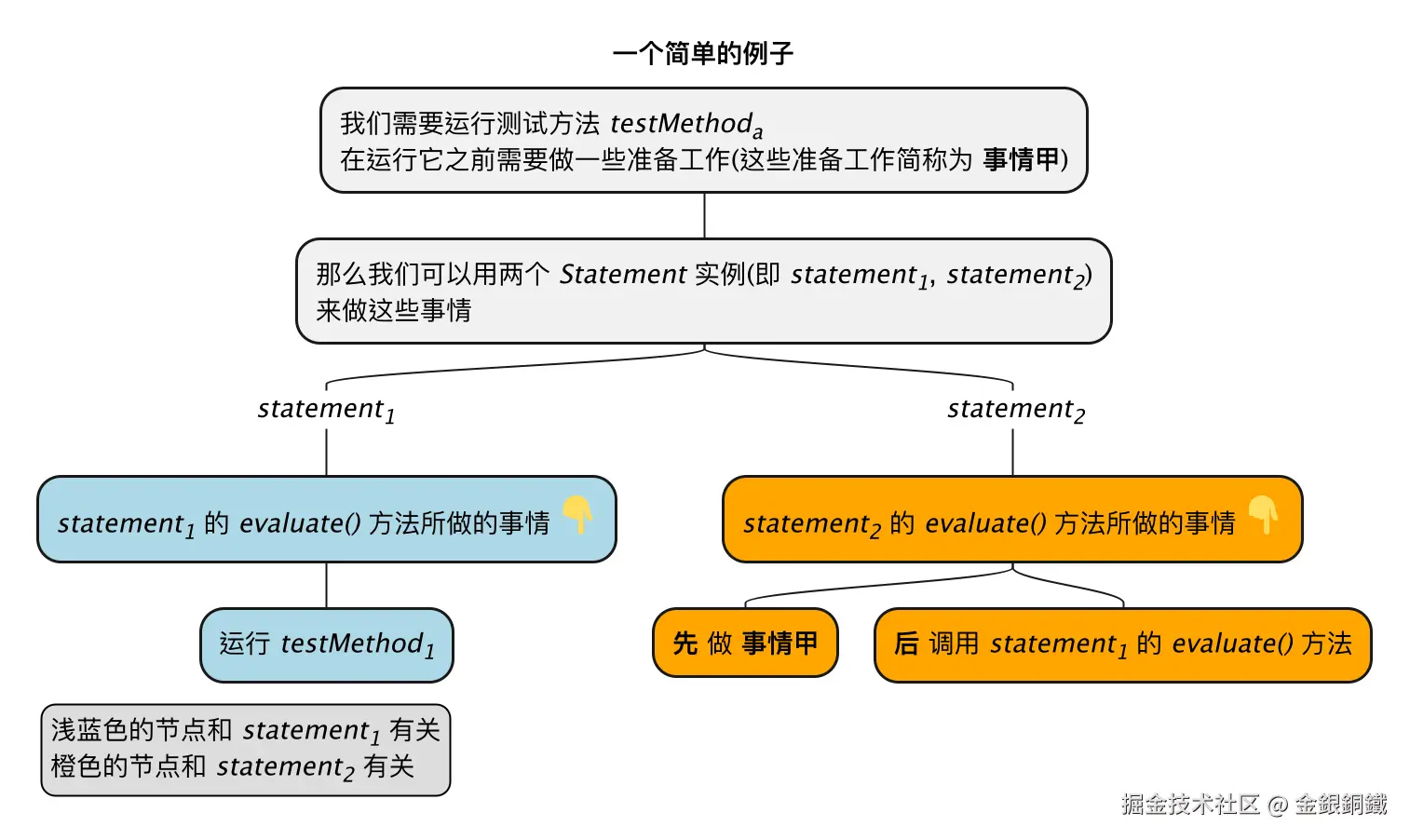 ******[#lightgreen] <i>statement<sub>1</sub></i> 的 <i>evaluate()</i> 方法会(通过反射)调用 <i>testMethod<sub>1</sub></i> 方法