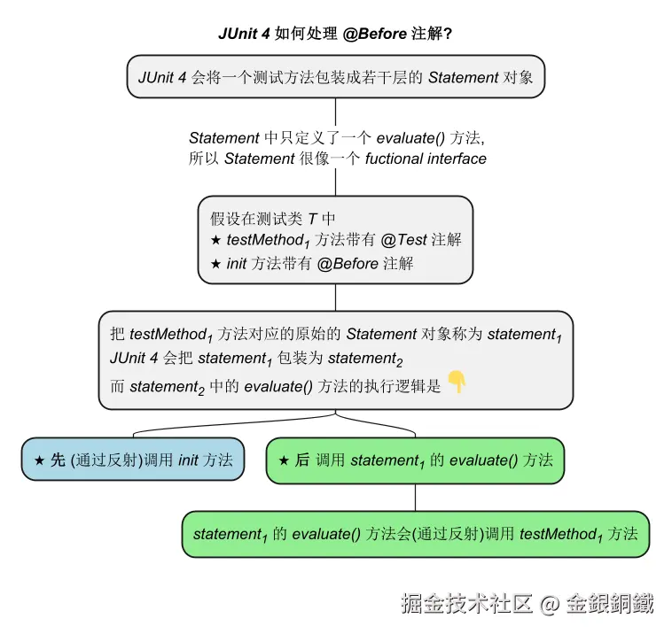 JUnit 4 处理 @Before 注解的核心原理并不复杂,可以用下方的思维导图来简单概括