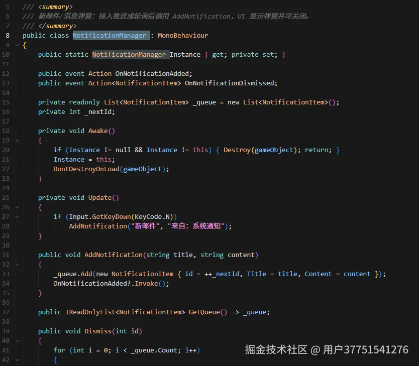 UI 只订阅这些事件,在回调里从 Manager 读取最新数据并更新界面,绝不写业务逻辑。例如 UI 的 OnEnable 里: