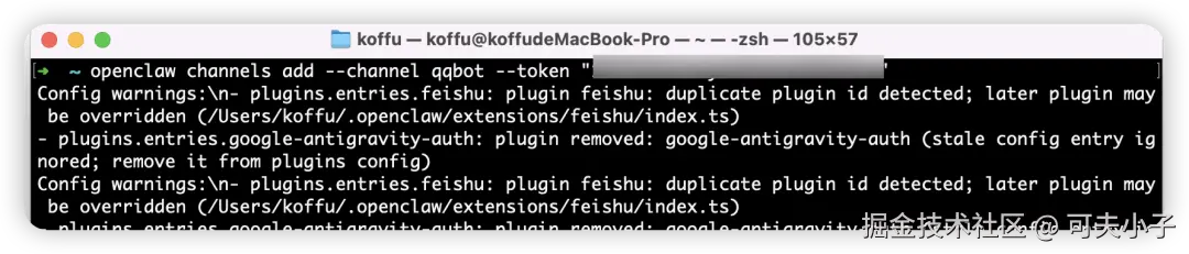 然后在OpenClaw所在的电脑终端上,执行上面的三条命令。拷贝、执行一般都没什么问题