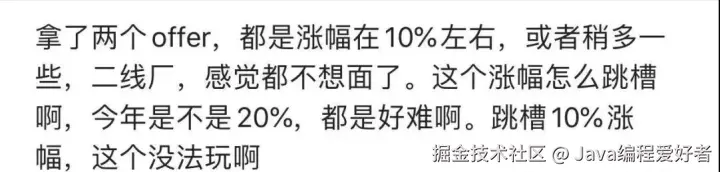 最近跟很多人聊了一下金三银四跳槽的事情,给我的一个明显感受是:今年的 Java 技术栈面试,无论一面还是二面,都非常考验技术功底。尤其是一线互联网大厂,对程序员的要求越来越高,不少想跳槽加薪的朋友都连连碰壁,甚至开始"自我怀疑"。