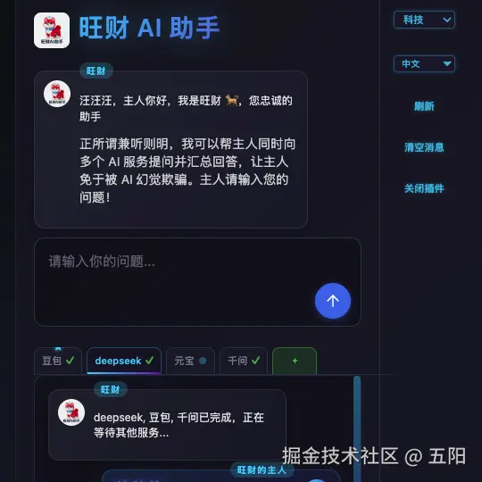 就在我被这些问题搞得要崩溃的时候,突然发现了AIChatProxy这个「救星」。这玩意儿是个Chrome扩展,能把多个AI服务聚到一起用,虽然不完美,但至少能让我少掉点头发。