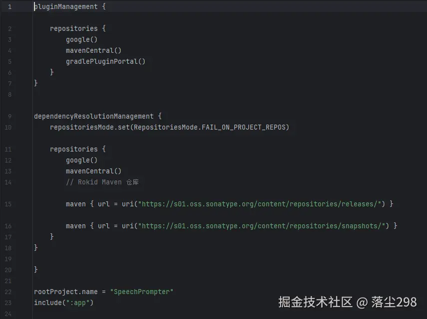 Rokid 的 SDK 托管在其私有 Maven 仓库,需要在 settings.gradle.kts 中添加仓库地址: