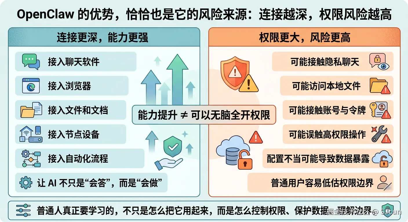 对普通人来说,真正需要学习的,不只是怎么把 OpenClaw 用起来,还包括怎么控制权限、保护数据、理解边界。