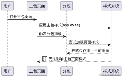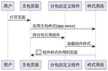 再结合跨分包自定义组件引用这一能力,就可以把样式放进分包组件里,随着组件的加载一起生效,从而实现样式的分包异步加载。