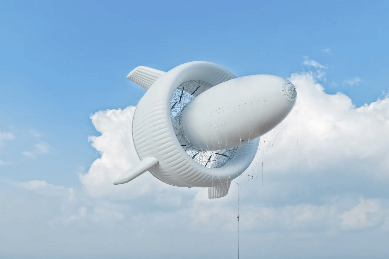 说白了,这是把传统风电"倒过来玩"------不要几百米高的钢塔和混凝土底座,改用复合材料气囊和缆绳。好处是省材料(最高省90%)、能移动、对鸟和景观影响小,而且高空风更稳,理论上能在地面没风的地方发电。目前正计划在广东一个环保岛上试用。