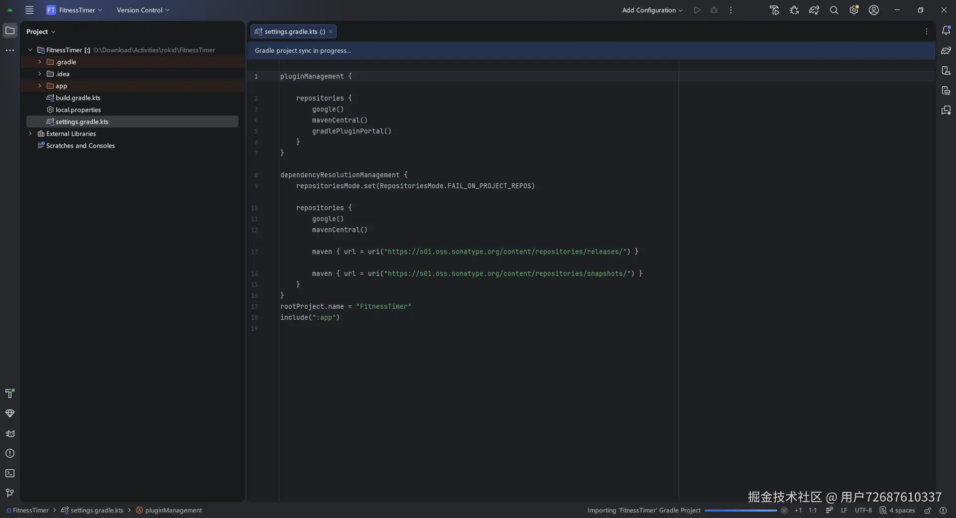 创建项目后,首先配置 Maven 仓库。在 settings.gradle.kts 中: