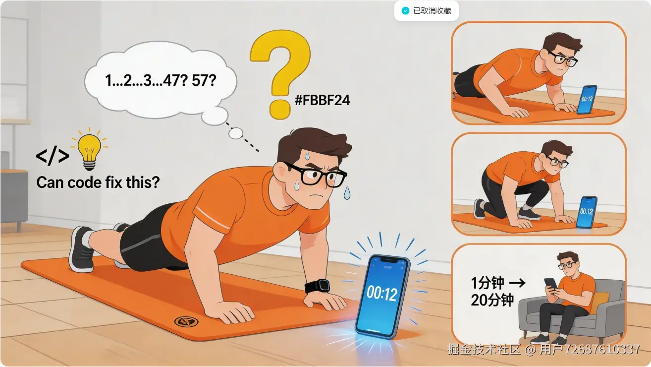 这已经不是第一次了。做俯卧撑的时候,低头看时间脖子疼;做深蹲的时候,扭头看手机重心不稳;组间休息的时候,说好歇60秒,一刷短视频20分钟就过去了。