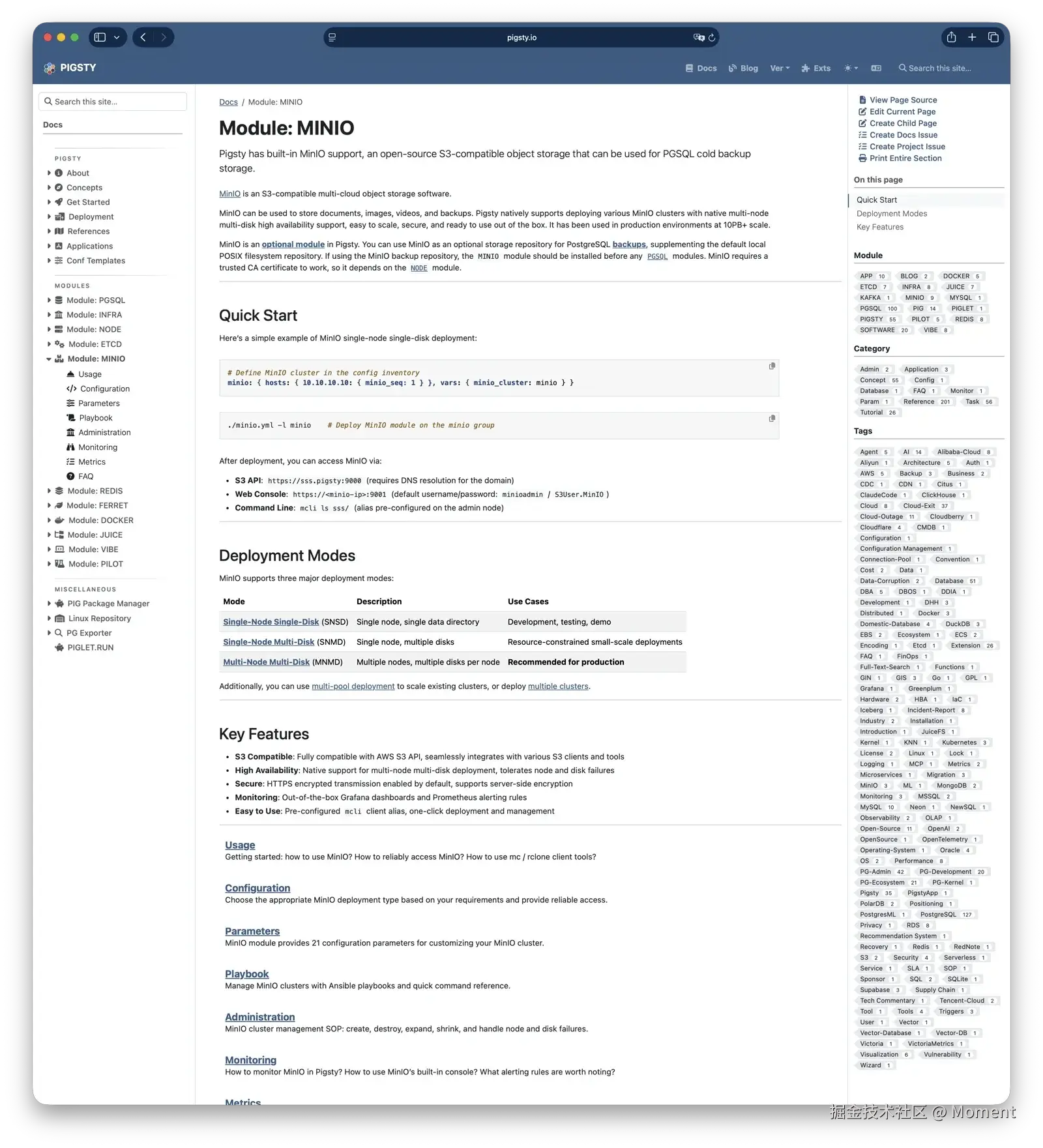 更重要的是,MinIO 也是 Pigsty 中的一个可选模块,很多用户在生产环境里,把它作为 PostgreSQL 的默认备份仓库。