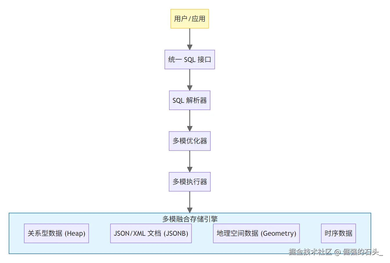 - 统一 SQL 接口:不管你是想查标准的关系数据,还是想挖 JSON 文档里的深层字段,或者是做复杂的几何运算,一条标准的 SQL 语句就能搞定。这就大大降低了学习门槛,企业现有的 SQL 资产也能继续发光发热。