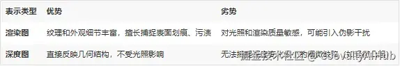 当前方法通常只依赖单一类型的2D表示(渲染图或深度图),但这两种图各有明显的优缺点: