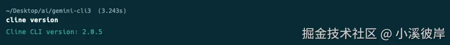 在命令行终端输入 cline version 查看CLI版本,如果发现安装的版本不是2.0以上的,建议使用指定版本安装,为什么要检查版本?因为1.0版本很难用🤣