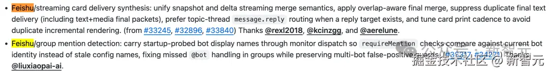 同时,两个平台都新增了持久化频道绑定功能。以前重启 OpenClaw 后,频道绑定关系可能丢失;现在这个状态会被持久化存储,重启后自动恢复。