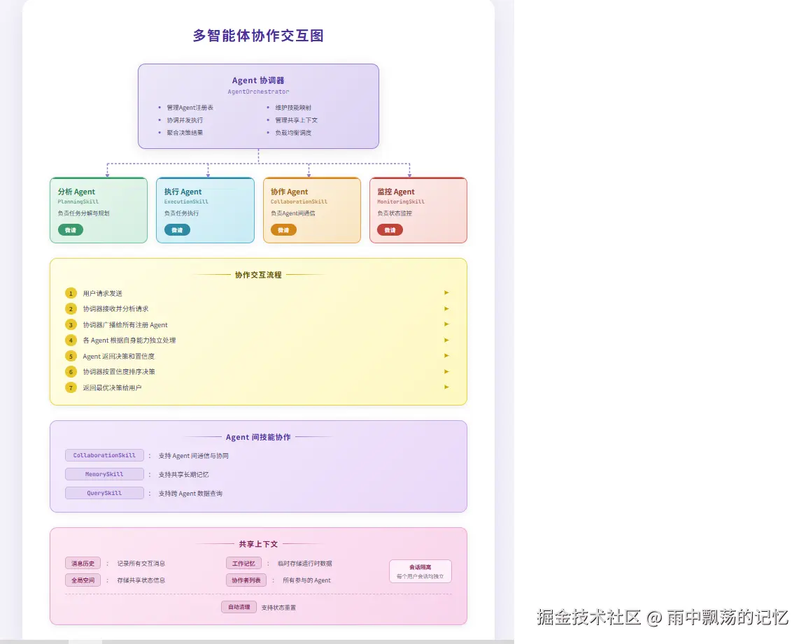 - 多智能体协作:通过协调器实现智能体间协作