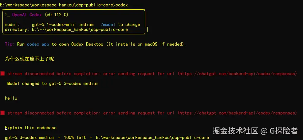 大家好,我是G探险者! 今天记录一个windows环境下使用codex一直断流的问题,让我痛苦不堪,整整一天的时间,最终搞定,也是魔法打败魔法,使用chatgpt自查,反复追问,最后搞定,值得记录,能够帮到遇到类似问题的朋友们也不枉我花费一天的时间。