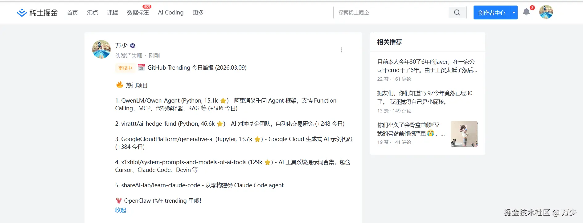 很多小伙伴说安装了小龙虾之后,不知道可以做一些什么,那么这里可以提供一些好玩的场景,比如自动发 帖,这里主要通过稀土掘金来演示。