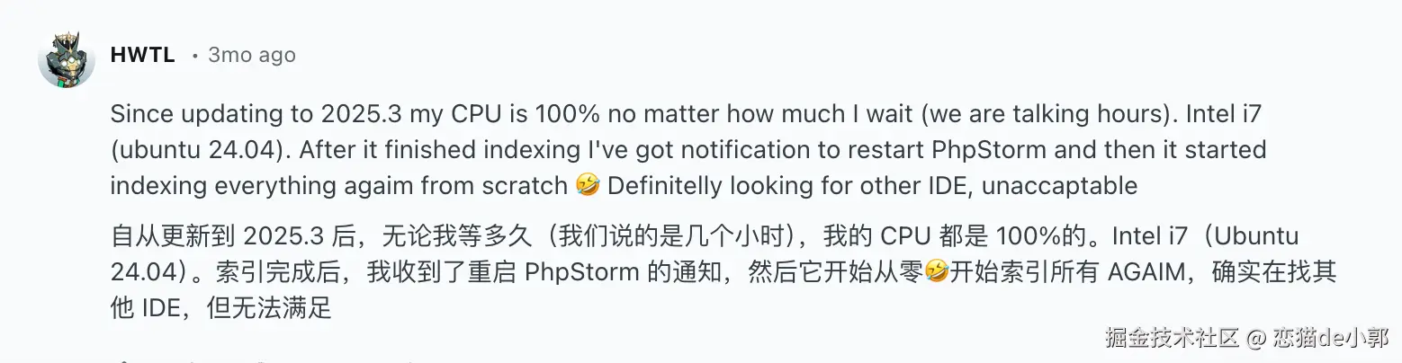 另外,JetBrains 在全面投向 AI 的过程中,也对已有 IDE 市场的维护出现了小部分反作用,例如: