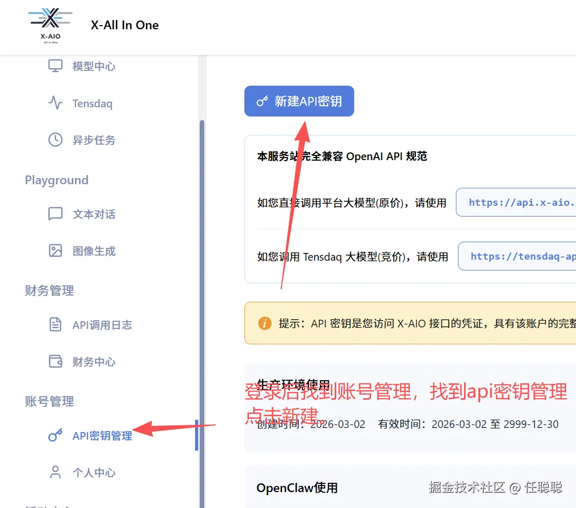 这里聪哥使用的是x-aio聚合大模型api平台,比官方的稍微要方便和低价一些。