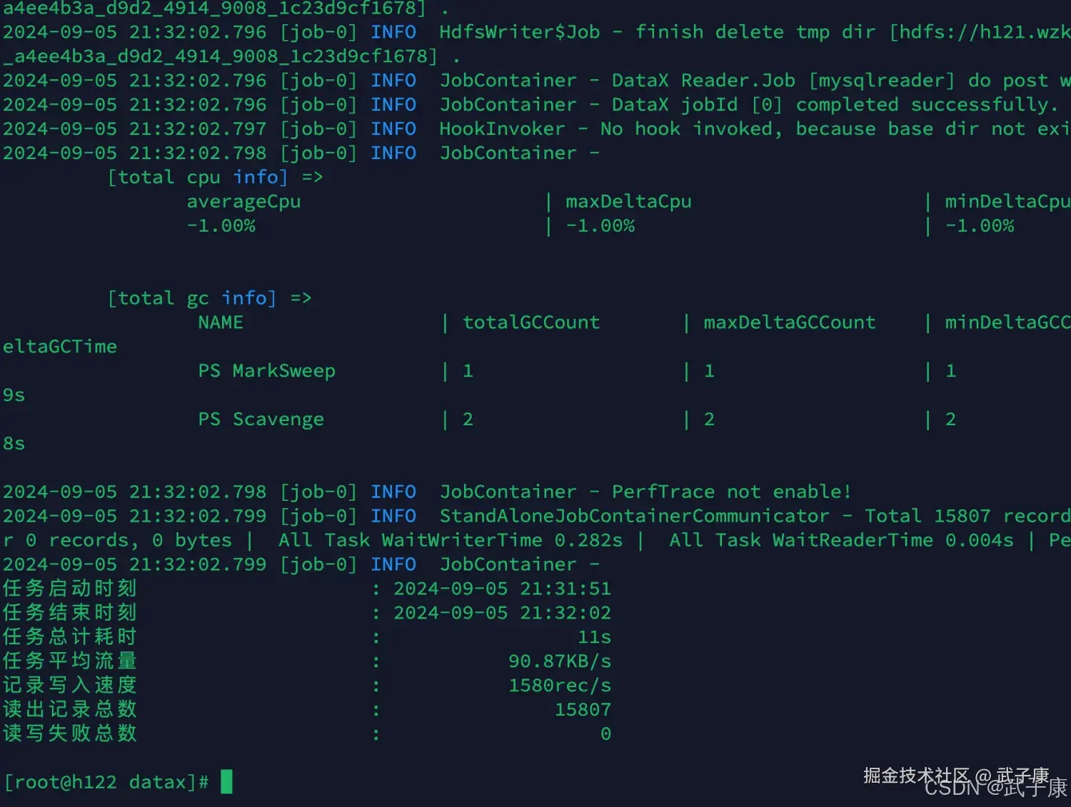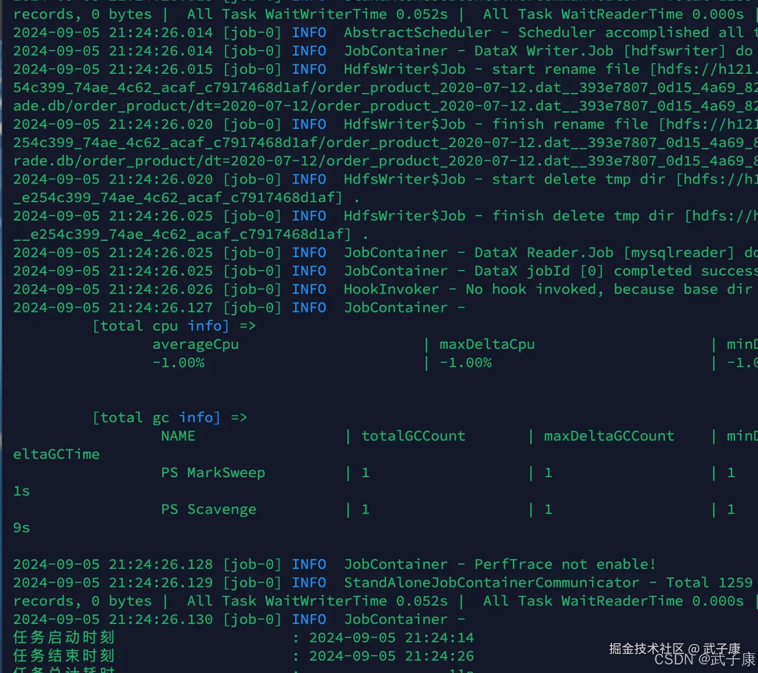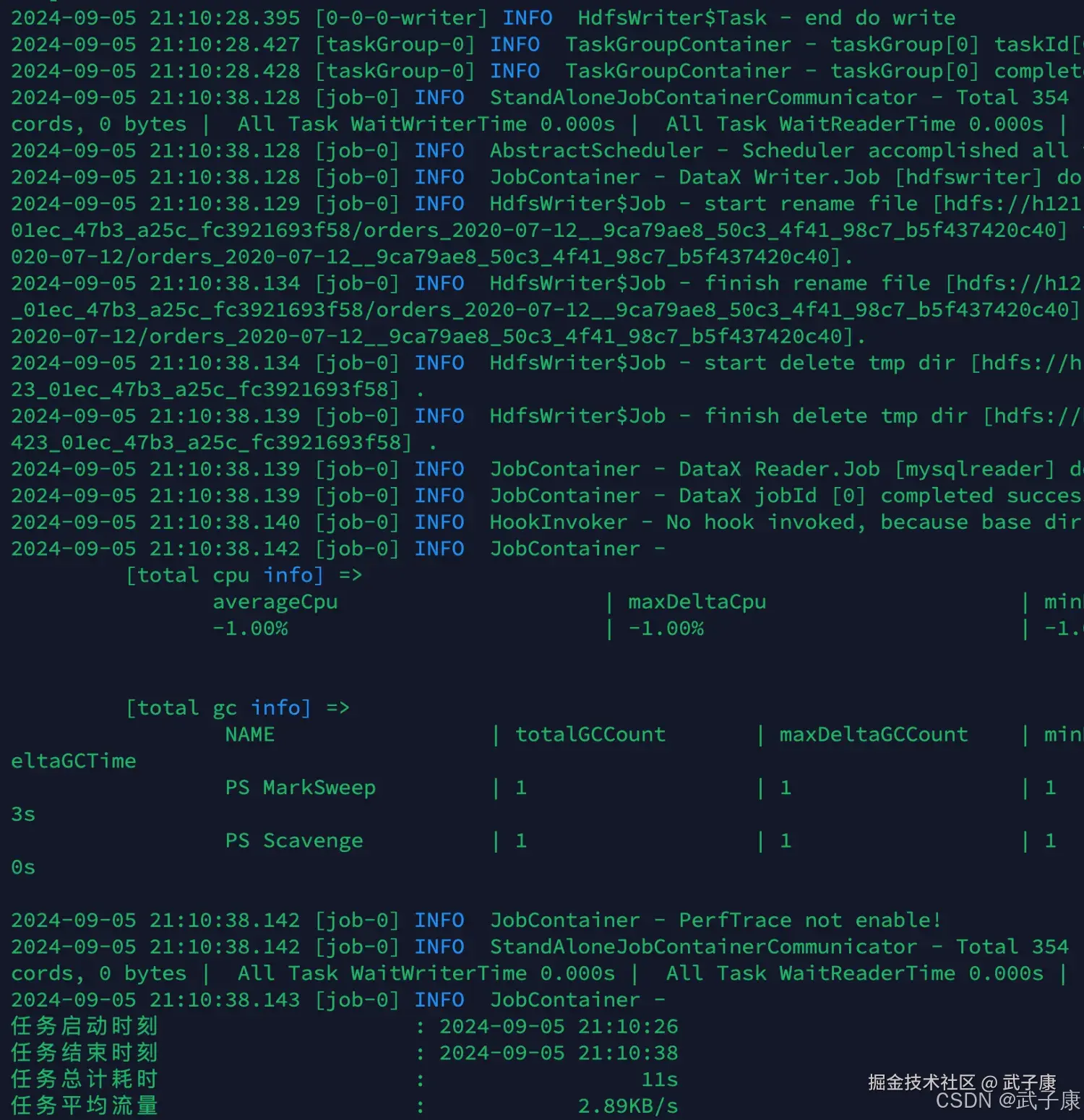 | HDFSWriter 报路径不存在/权限不足 | 目录未创建或 HDFS 权限不允许写入 | hdfs dfs -ls 看目录/owner;DataX 日志看 Permission denied | 预创建目录并授权;或调整写入用户/kerberos 配置 |