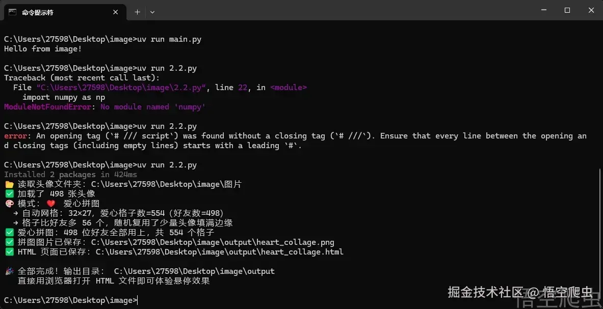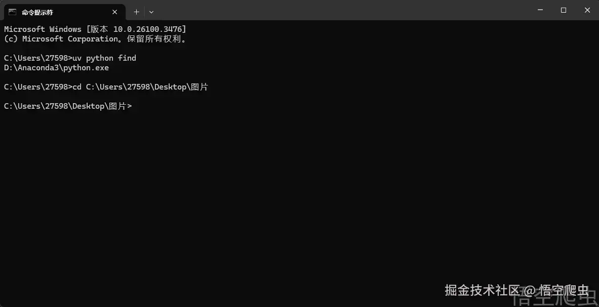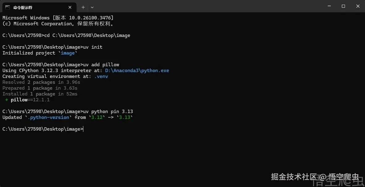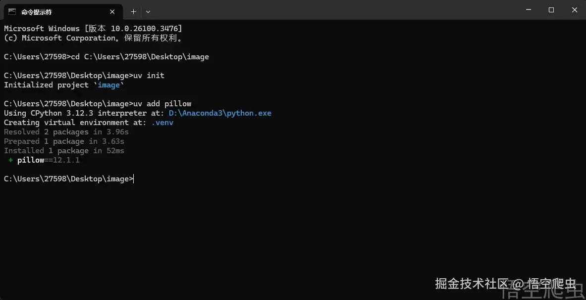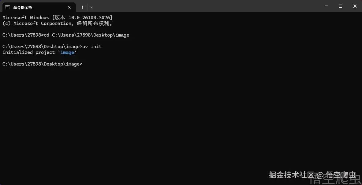 这个问题是因为 uv init 默认会把你的当前文件夹名("图片")作为 Python 项目的名字。