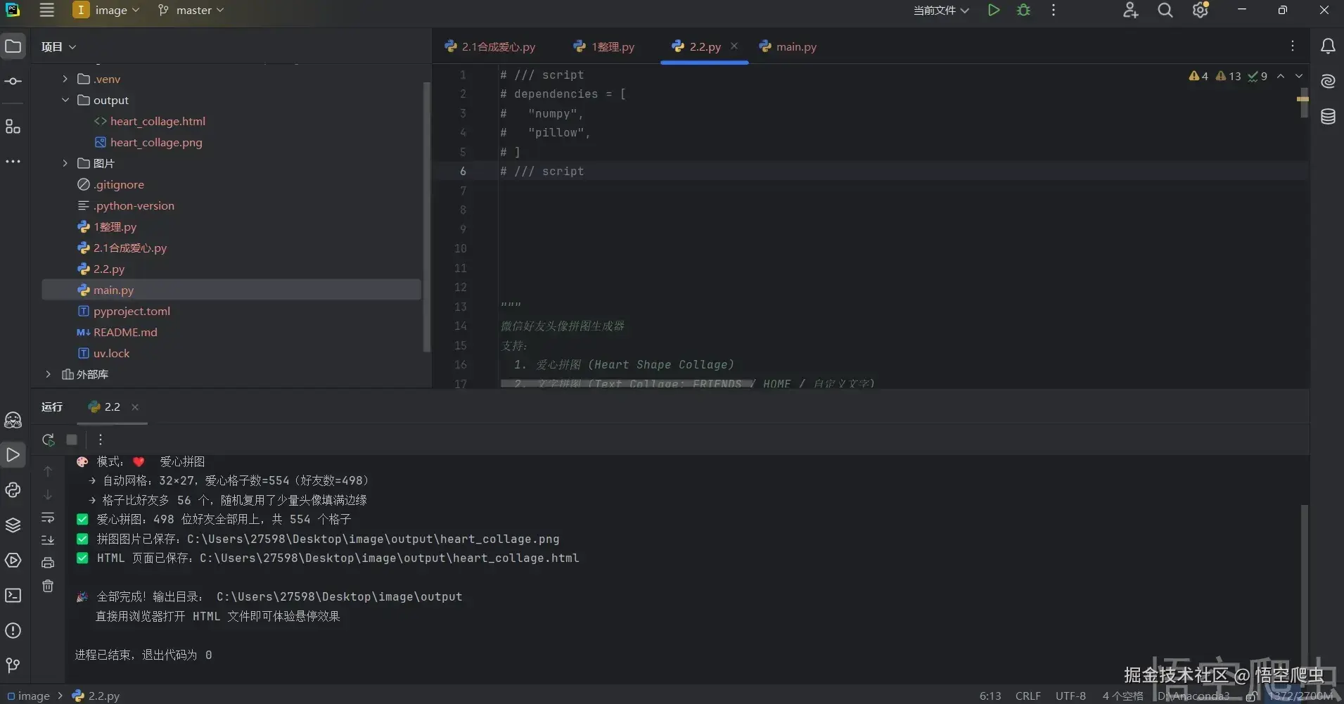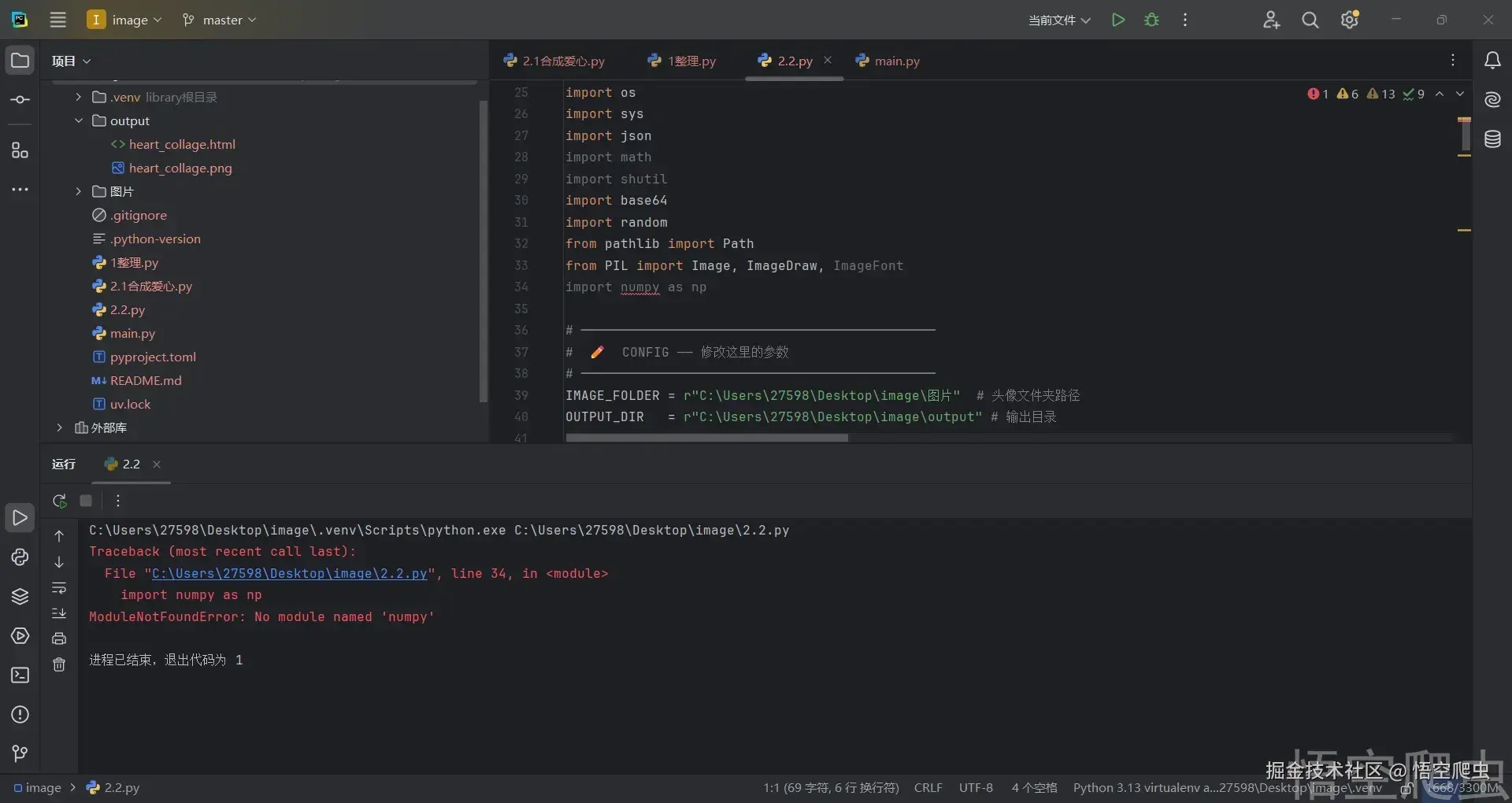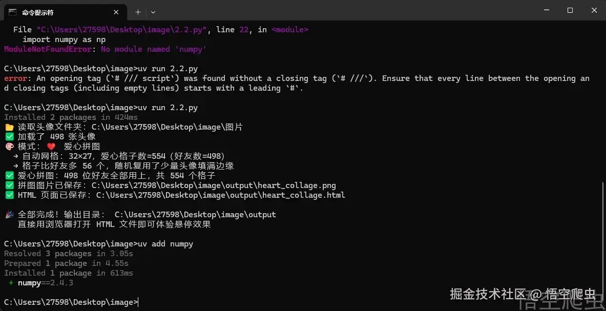 这个问题是因为 uv init 默认会把你的当前文件夹名("图片")作为 Python 项目的名字。