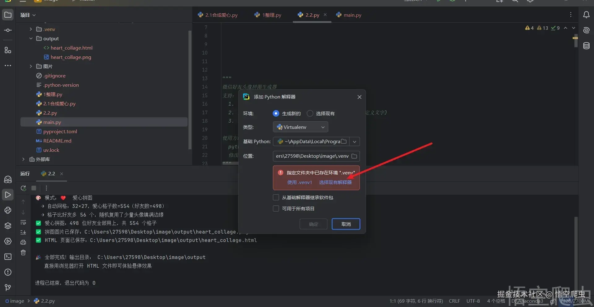 .venv:它在我的image文件夹里建了一个 虚拟环境。 - 安装成功 :