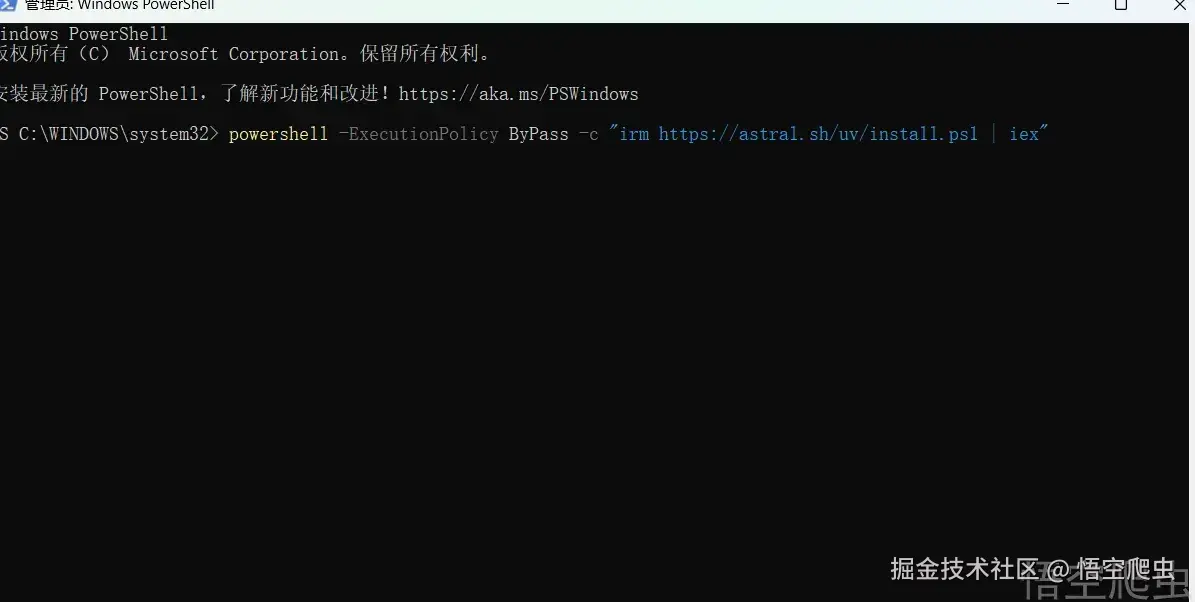 arduinopowershell -ExecutionPolicy ByPass -c "irm https://astral.sh/uv/install.ps1 | iex"