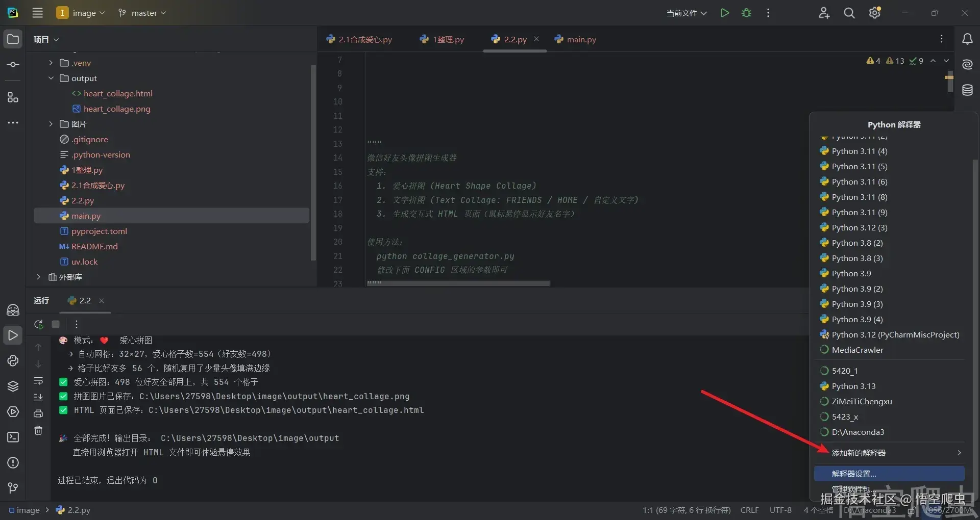 我们把pycharm里面的这个环境,也换成我们刚才uv创建的这个环境