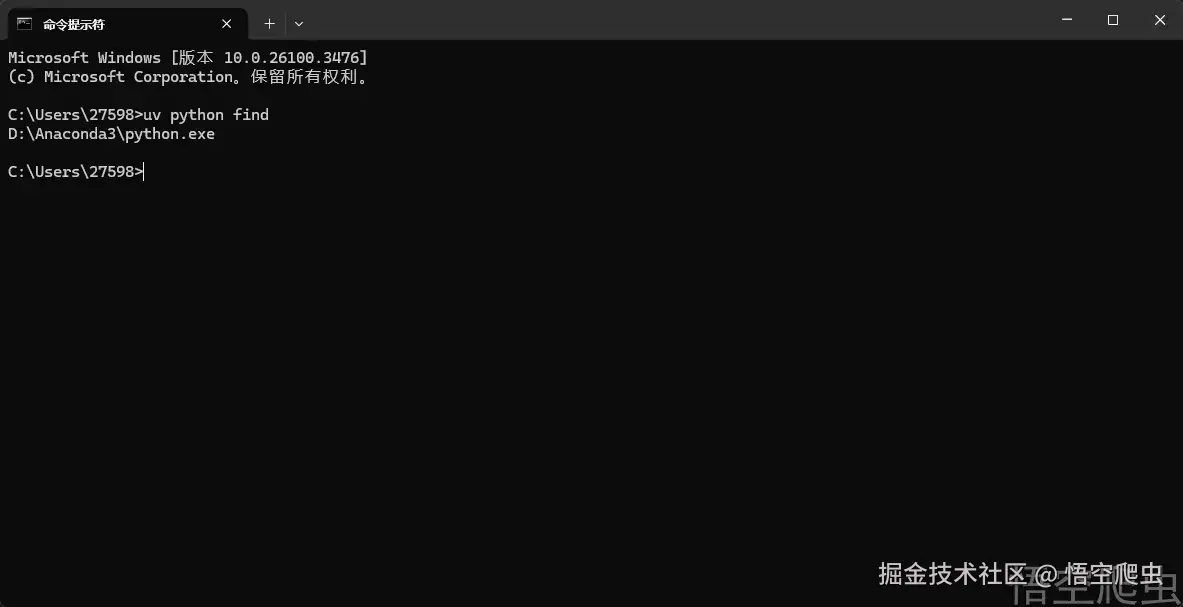 uv发现我的电脑里已经有D:\Anaconda3\python.exe了,所以它很聪明地直接拿这个版本作为基础来创建环境,没让我再等下载。 - 创建了