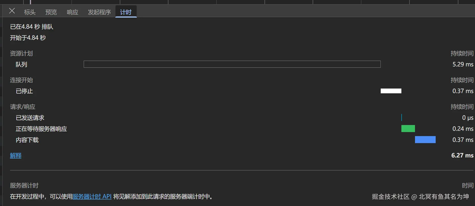- Stalled :请求已准备好,但被浏览器强行暂停近 5 秒!