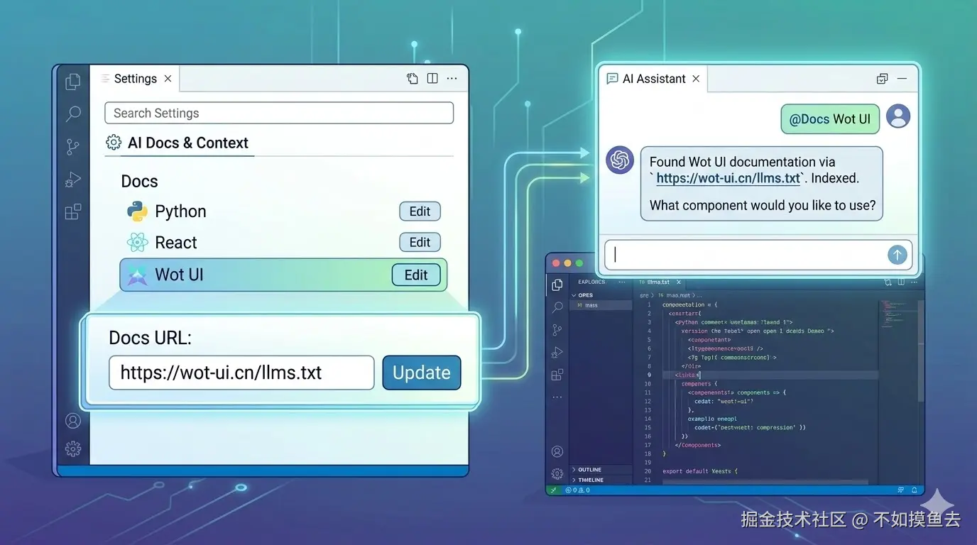 众所周知,Wot UI 是一个 AI 友好型的组件库,本指南旨在介绍如何让 VSCode、Cursor、TRAE、Antigravity 等 AI 工具更好地理解 Wot UI 组件库。