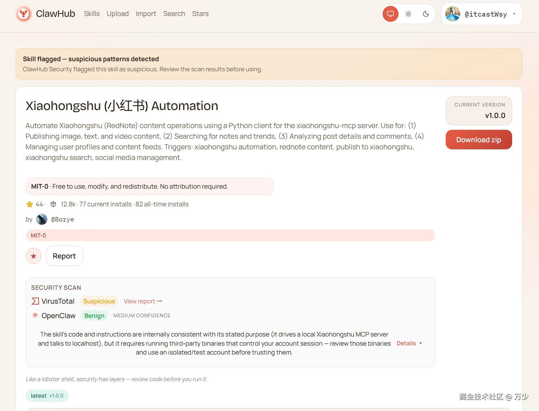 小红书平台已经提供了相应的 MCP 服务,并且在 ClawHub(OpenClaw 官方 Skill 市场)上已有公开的 Skill,用户可以方便地使用。