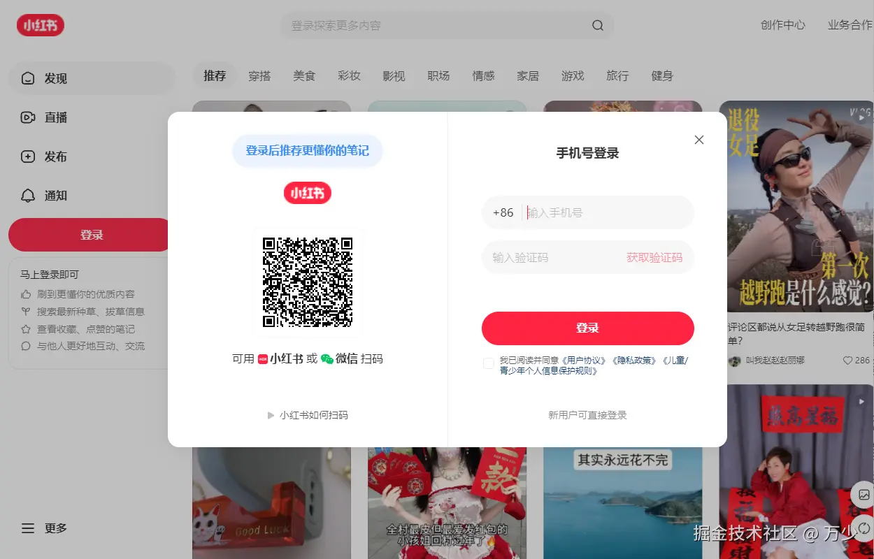 在弹出的登录页面中完成账号登录操作。可以使用手机号、微信或微博等方式登录小红书账号。