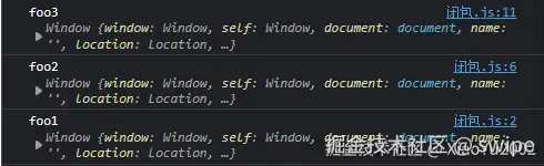 - 输出 "window"。obj.foo() 返回一个函数,然后独立调用,应用默认绑定。