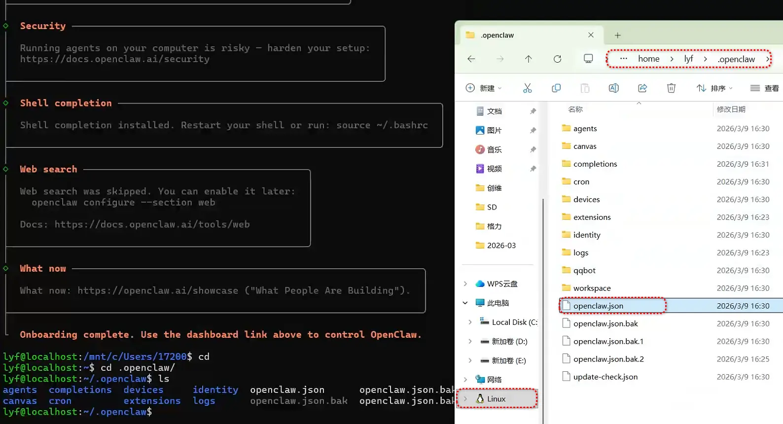 也可也在电脑里找到linux,然后在文件夹里找到openclaw.json