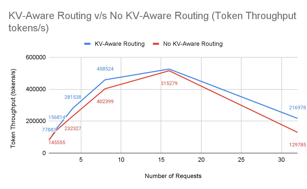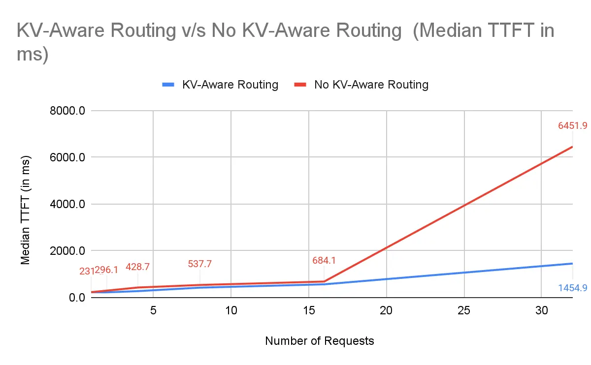 | 请求数 | NVIDIA Dynamo KV 感知路由 | 无 KV 感知路由 | 提升幅度 |