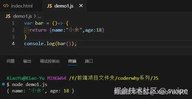 var bar = () => { name: "小吴", age: 18 }