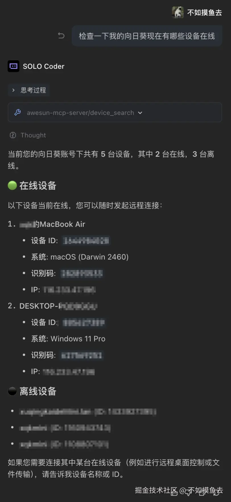 而向日葵 MCP 则就是把向日葵的"设备管理"和"远程操作"能力,封装成了AI能听懂的标准接口(MCP协议)。
