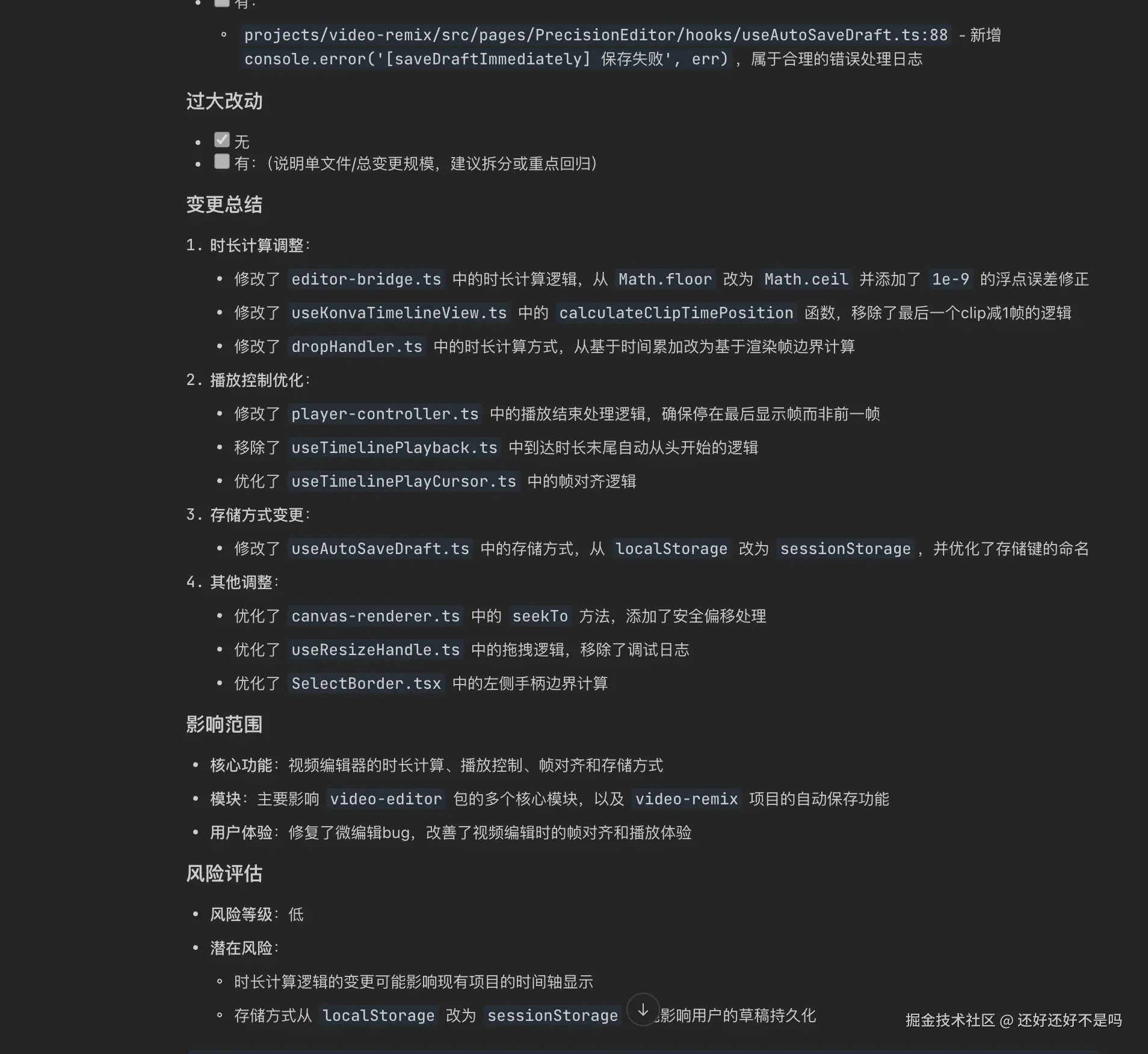 - 用 2--4 句话概括本 MR:主要改了什么、影响范围、是否有风险点。