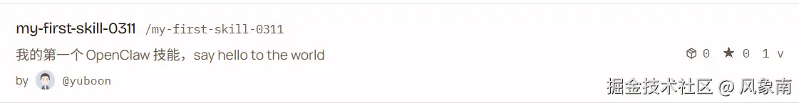 至此,一个最小可用的 ClawHub Skill 就开发完成了。